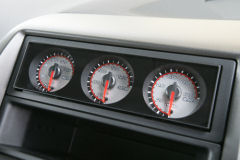 ⇑ 中控台設有三連式43mm的儀錶,在行車時隨時能夠監察引擎的狀態。