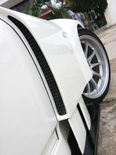 ⇑ 頭沙板除了大幅向外拋闊之外,位於沙板後方的散熱孔亦是不少GT賽車常會採用到的設計。