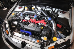 4B11 MIVEC引擎升級至 2307 c.c. 排氣量,馬力571 ps/7340 rpm ,扭力65 kg/5320 rpm,的生氣配用上 BLITZ CARBON SUCTION KIT,BLITZ SURGE,BLITZ 2.3升級Kit, TURBO-KIT, OIL COOLER RS及BLITZ INTERCOOLER等冷卻部品。 | 排氣部份特別用上NUR-SPEC C-Ti Quad with Carbon Diffuser套裝,尾下碳纖Diffuser賣相吸引。 |