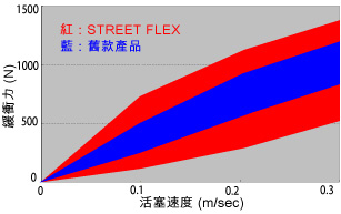 STREET FLEX與舊款產品的衰減力變化量比較(例)
