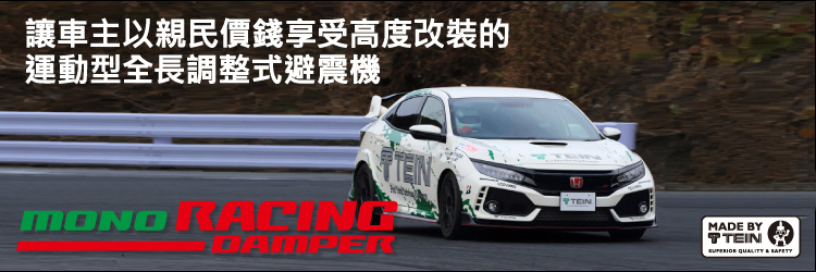 MONO RACING是為了滿足經常落場的用家需求而開發。 以高端款式「SUPER RACING」設定作為基礎,並採用支援各種賽事中累積回來的豐富數據,施以適合Sporty行駛的基本彈弓比設定、衰減力調整。 |